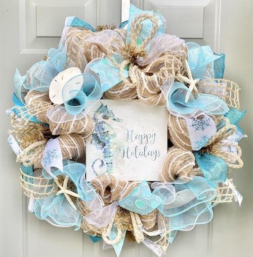 6. Coastal Christmas Wreath from Sand Dollar Lane